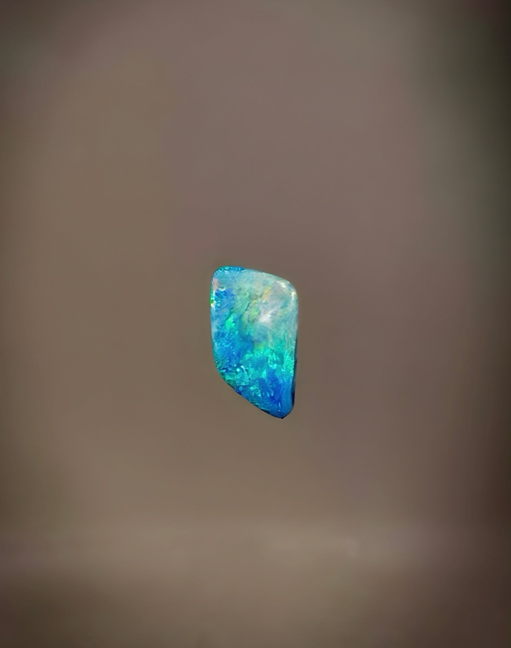 At 3.55 carats, Celestial Current is a luminous opal doublet alive with radiant blues and greens, accented by flickers of gold that ripple like light moving through water. Its freeform shape captures a sense of natural flow, while the full-face play of colour and high brightness ensure brilliance from every angle. A captivating gem for those who seek both elegance and individuality, it’s perfectly suited as the centrepiece of a pendant or statement ring